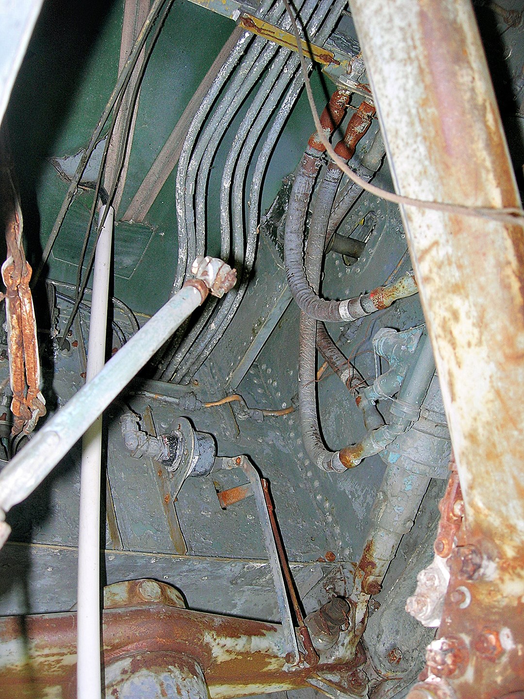 Dieses Gestell befindet sich auf der Steuerbordseite im Heckbereich. Vermutlich war darin (u.a.?) die Kurzellenstation untergebracht. Auf meinen höher auflösenden Aufnahmen konnte ich in kyrillisch die Bezeichnung "MIKRON'' entziffern. Vor vielen Jahren erfuhr ich gesprächsweise mal von so einer Anlage. Das zylinderförmige Teile ganz oben ist m.E. kein Umformer. Scheint eher ein Antennenschalter o.ä. zu sein. Bei der TU-124/IL-14 usw. gab es ja noch den Antennendraht der vom Leitwerk abgespannt wurde. Weiß jemand genau wo und wie bei der Tu-134 die KW-Antenne integriert ist? Eventuell in diesem Kegel/der Keule des Leitwerks?