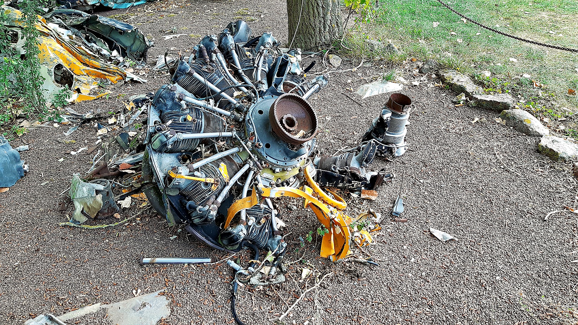 Das Motorenwrack ist kein 14-Zylinder-Doppelsternmotor, somit kein ASch-82. Es scheint ein 9-Zylinder-Sternmotor zu sein.