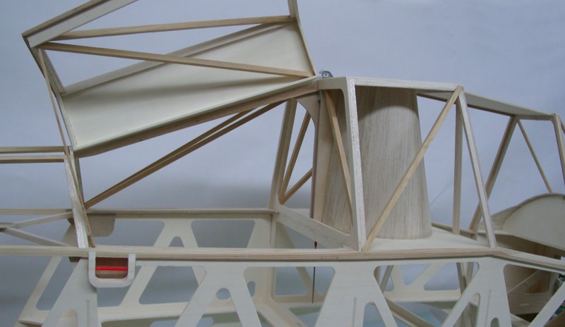 … nun endlich wieder ein kleines Update, heute war die Schleppkupplung dran. Ein Frästeil aus 8mm Alu bildet das Kopfstück, gehalten von 2 Sperrholzteilen. Die Endfestigkeit bekommt die Konstruktion nach weiteren Verstrebungen und der Beplankung des oberen Rumpfbereiches. Der obere Behälterabschnitt ist ebenfalls schon drin, 1,5mm Balsa gerollt. Innen kommt sicher noch eine Lage Seide drüber.