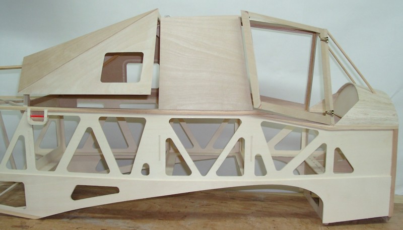 Hier ist die Klappe der Mechanikerkabine provisorisch angeschlagen. Mit dieser Lösung kann ich leben. Nun können die Türen beplankt werden.