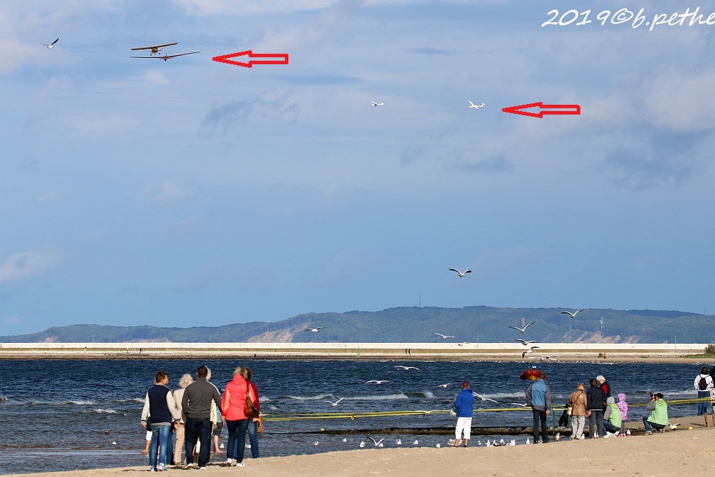 Im Rahmen einer kleinen Flugshow über der Ostsee vor Swinemünde. Gestartet wurde von Heringsdorf.
