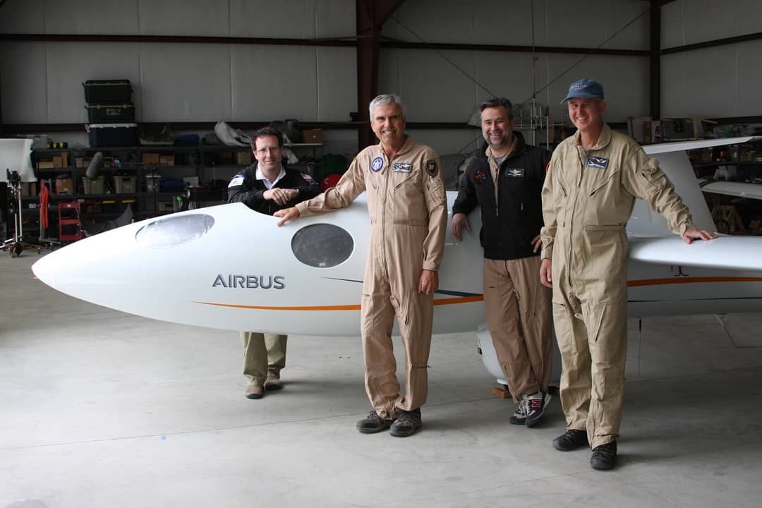 Im Bild die Perlan- Piloten (links nach rechts): Morgan Sandercock, Jim Payne, Miguel Iturmendi, Tim Gardner