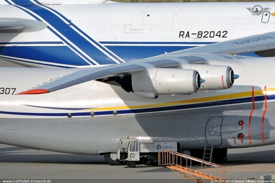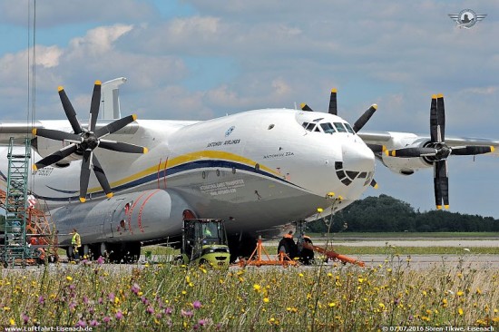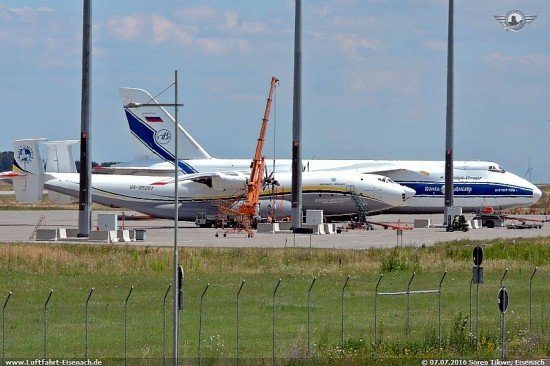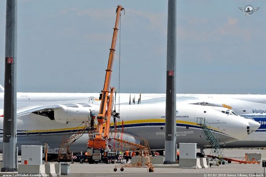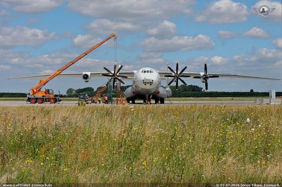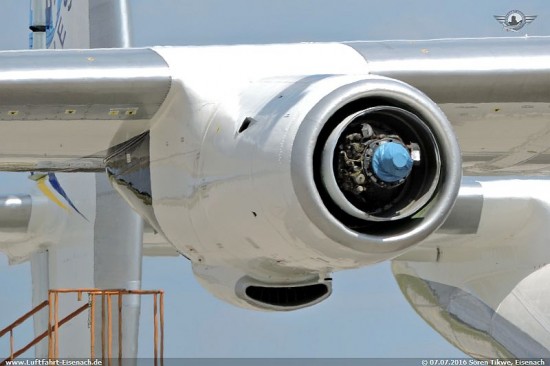 Offenbar ist es so, das es Systemunterstüzung für das Kusnetzow NK-12 und/oder den dazugehörigen Propellern ausschliesslich in Russland gibt, da dort der Hersteller sitzt und man hier ebenfalls 5 AN-22A sowie eine ganze Reihe Tupolew TU-95 betreibt, die ebenfalls dieses Triebwerk verwenden. In der Ukraine gibt es nur die UR-09307 mit einem NK-12. Da es bekanntlich Spannungen zwischen Russland und der Ukraine gibt, werden diese Arbeiten nun auf neutralem Gebiet in Leipzig durch die russische Firma Volga-Dnepr-Technik erledigt.