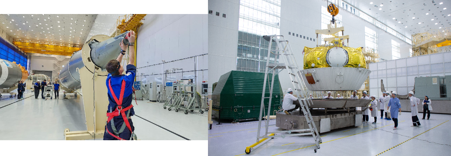 Die Vorbereitungen des Trägers laufen seit dem 08. Dezember (Links), die dazugehörige Fregat-Oberstufe (Rechts) wurde bereits Ende Nov. betankt und vorbereitet Q.: NovKos