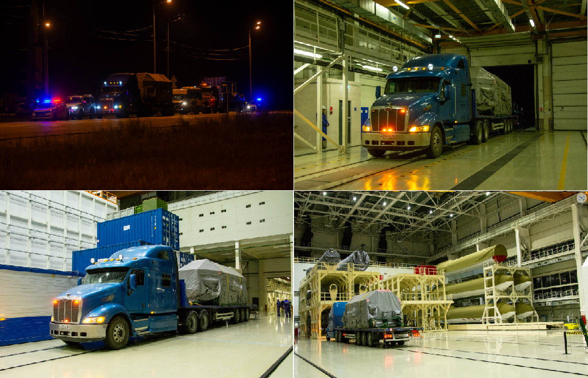 Die Anlieferung auf dem Kosmodrom erfolgte ~ Mitte September per Luft- und Straßentransport (hatte ich dann verdaddelt) u. füge es im hier mit ein: