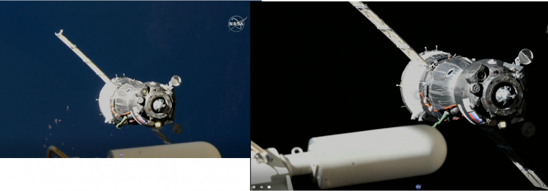 Es folgen zwei Orbits zur Annäherung / Kopplung (Stream vom Telestudio Roscosmos gegen 20 Uhr MOZ = 19 Uhr MESZ in halber Stunde , wie eben angezeigt wird, die Nasa liefert schon "Kurs" - und Annäherungsbilder)