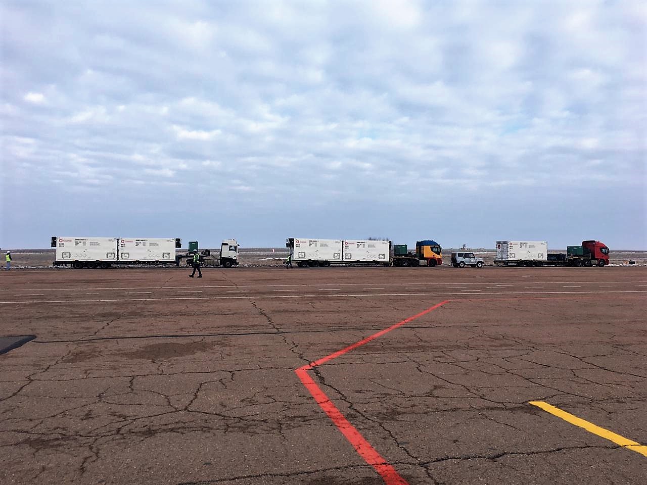 Nachtrag: Roskosmos hat tatsächlich noch eine Bildstrecke von der Landung der RA-82043 in Baikonur bis zur Containerabfahrt veröffentlicht