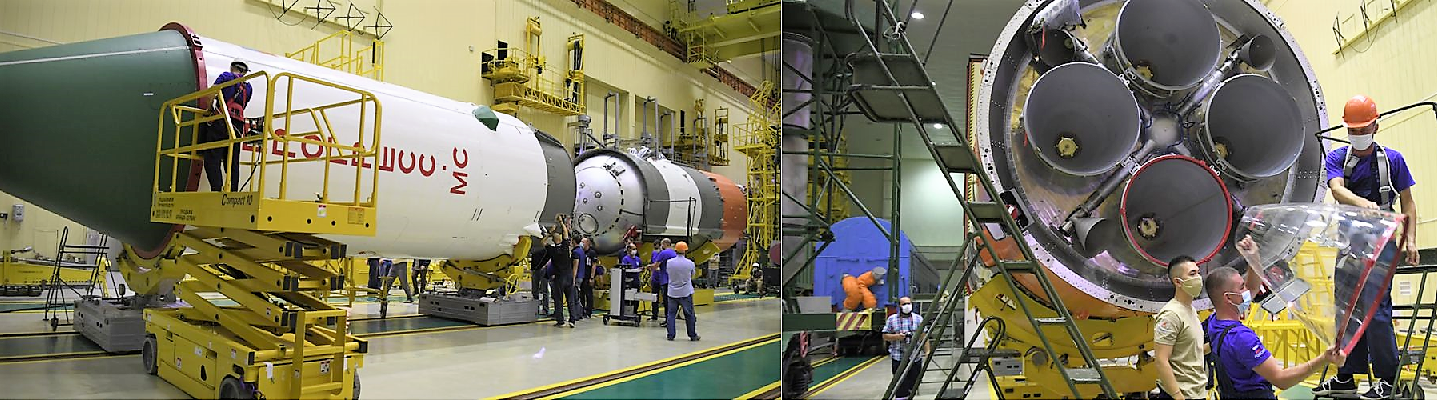 Letzten Samstag, am 18.07. erfolgte im MIK die Montage - Raumschiff mit der dritten Stufe und dann verbunden mit dem Träger / 1. und 2. Stufe Q.:Bildstrecke https://www.roscosmos.ru/28843/