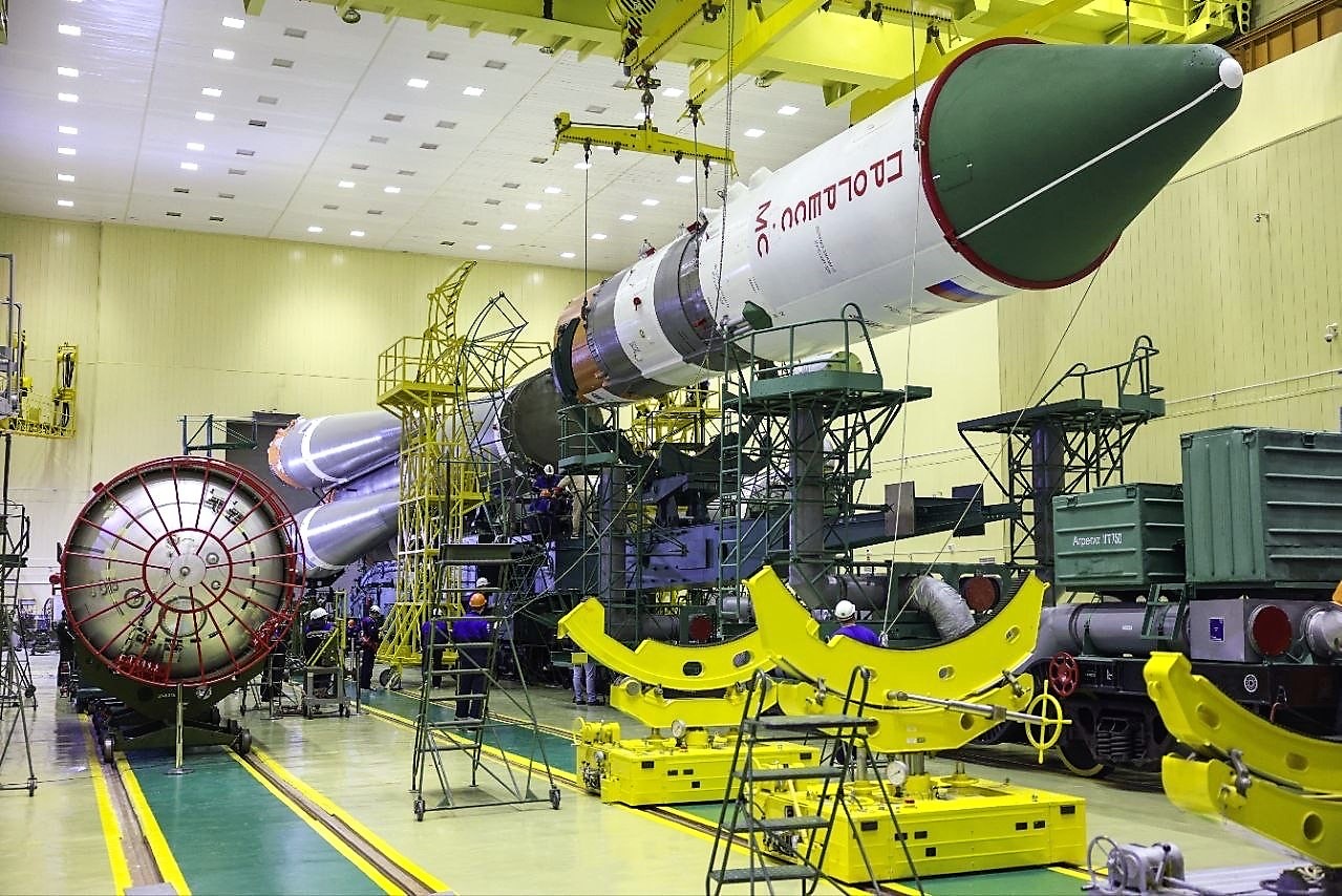 Gestern am 05.02. wurde die Integration des Sojus-Trägers mit dem Frachtraumschiff MS-22 im technischen Komplex MIK des Kosmodroms Platz 31 abgeschlossen
