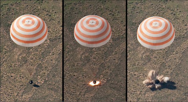 11:14 Uhr MESZ: Landung (Touchdown) in der kasachischen Steppe.