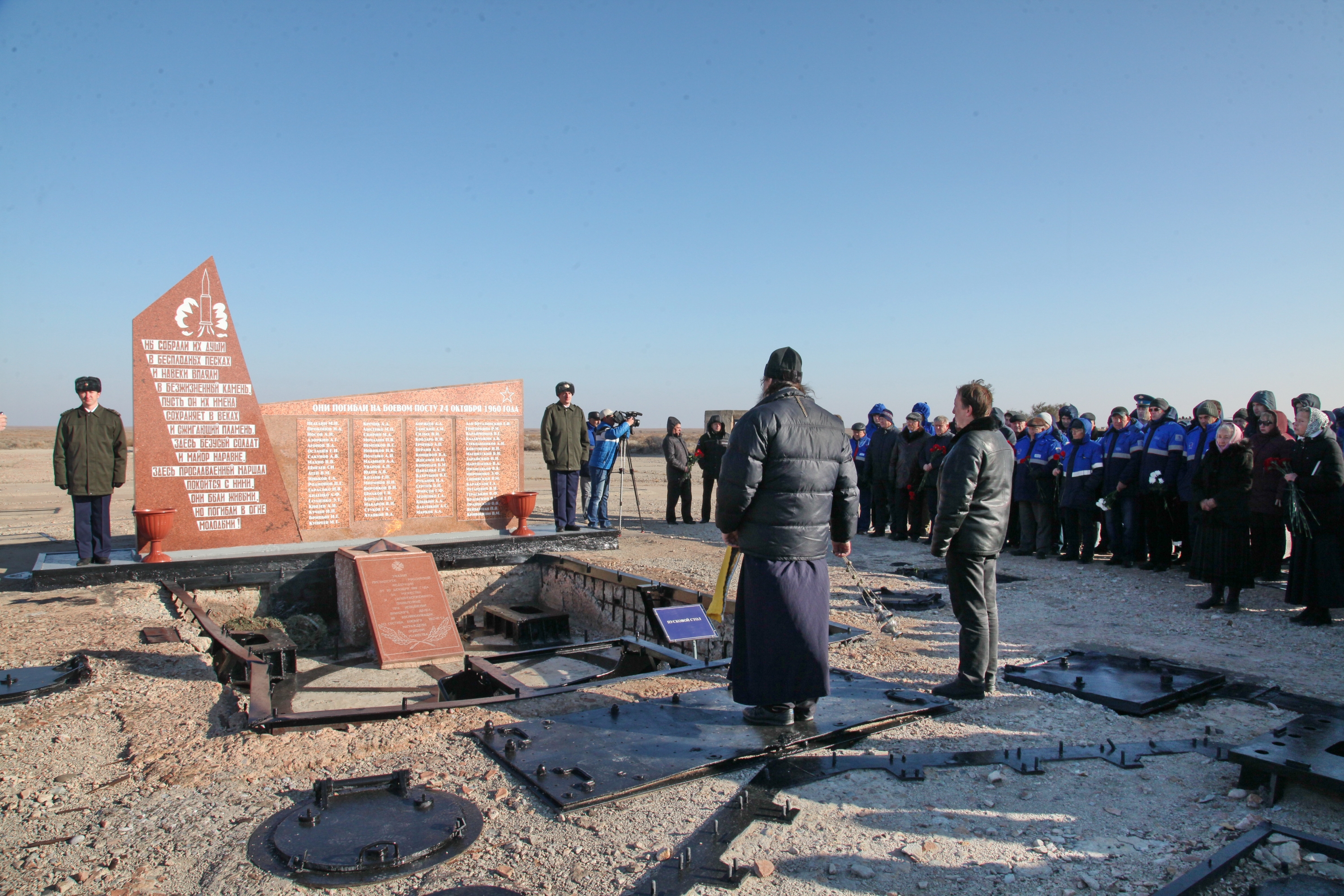 Man gedenkt der Opfer der größten Katastrophe der Geschichte in der Raumfahrt, bekannt unter "Nedelin-Katastrophe".