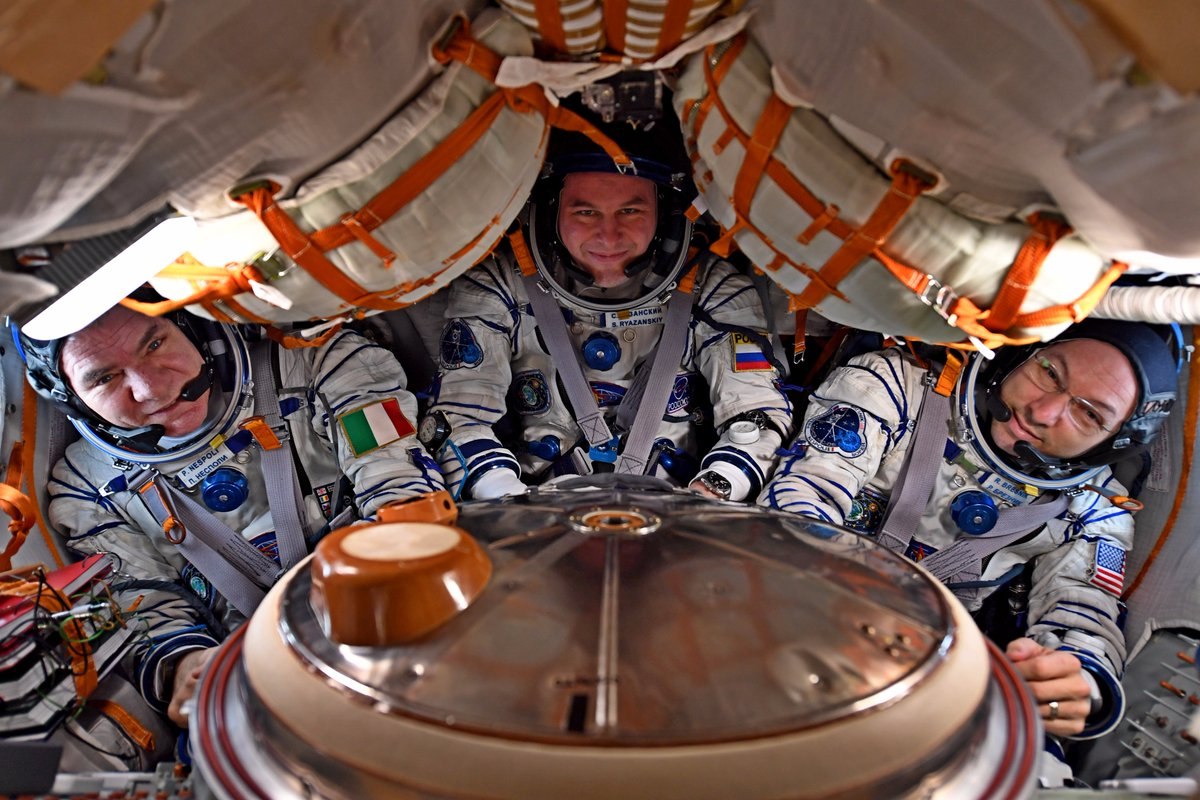 für die sechsköpfige amerikanisch-russisch-italienische Besatzung auf die Umlaufbahn.