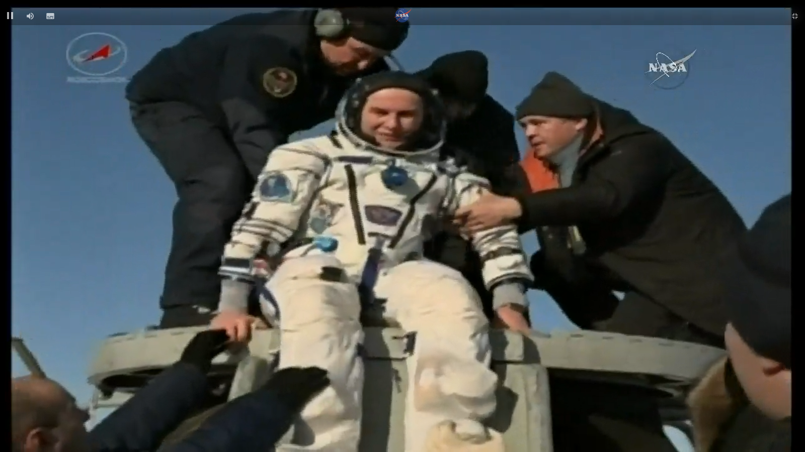 Bis Sergej Rjasanski als Erster (immer der Kommandant aufgrund der Sitzposition) aus der geöffneten Luke der diesmal senkrecht stehen gebliebenen Kapsel steigen konnte, vergingen trotzdem 20 Min.