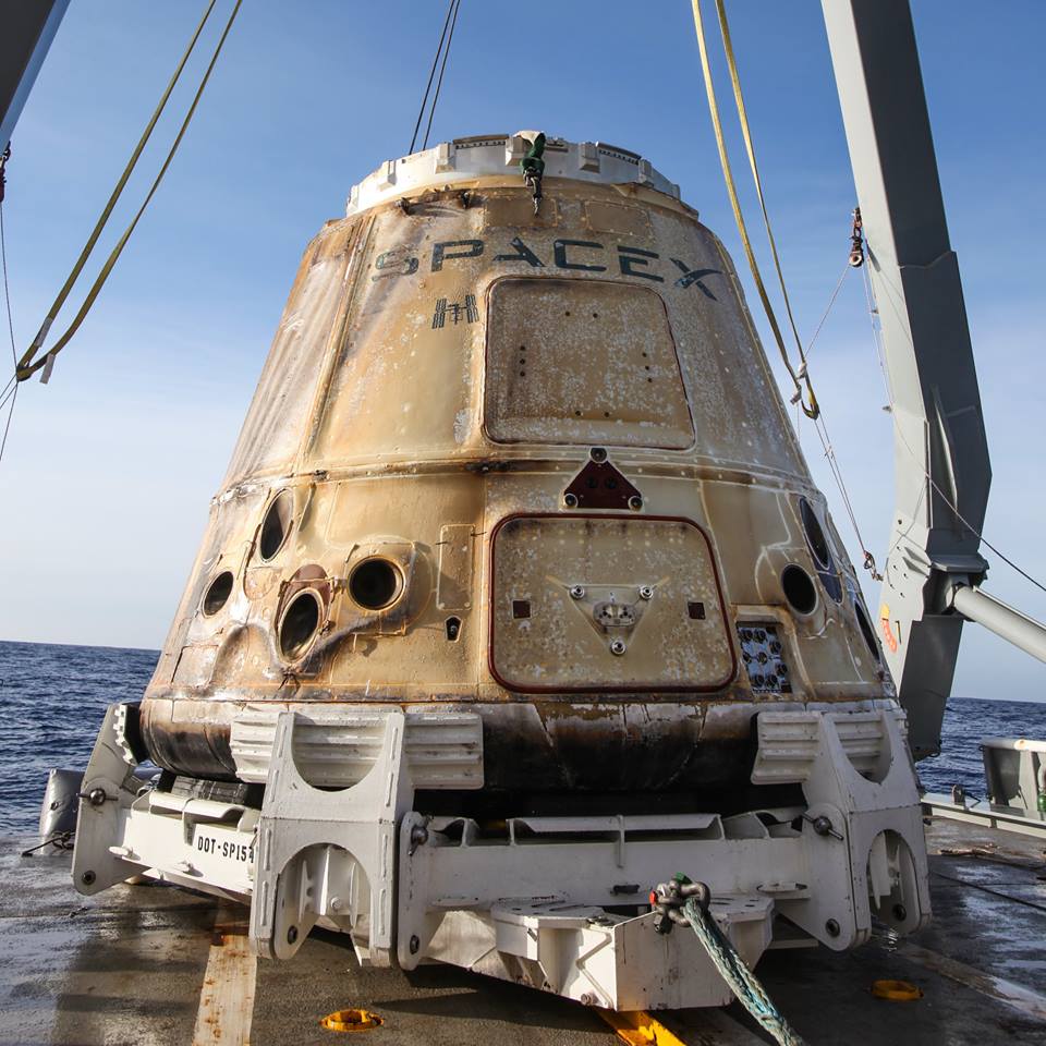 Unter dem Schriftzug SpaceX erkenntlich das (ein) ISS-Symbol. Es ist vorgesehen, daß da noch ein Zweites erscheinen wird, nach der Wiederaufbereitung ...