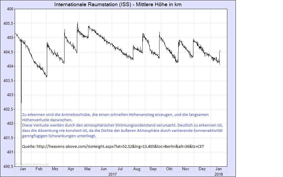 Die neue mittlere Bahnhöhe liegt jetzt bei 404,8 Km.