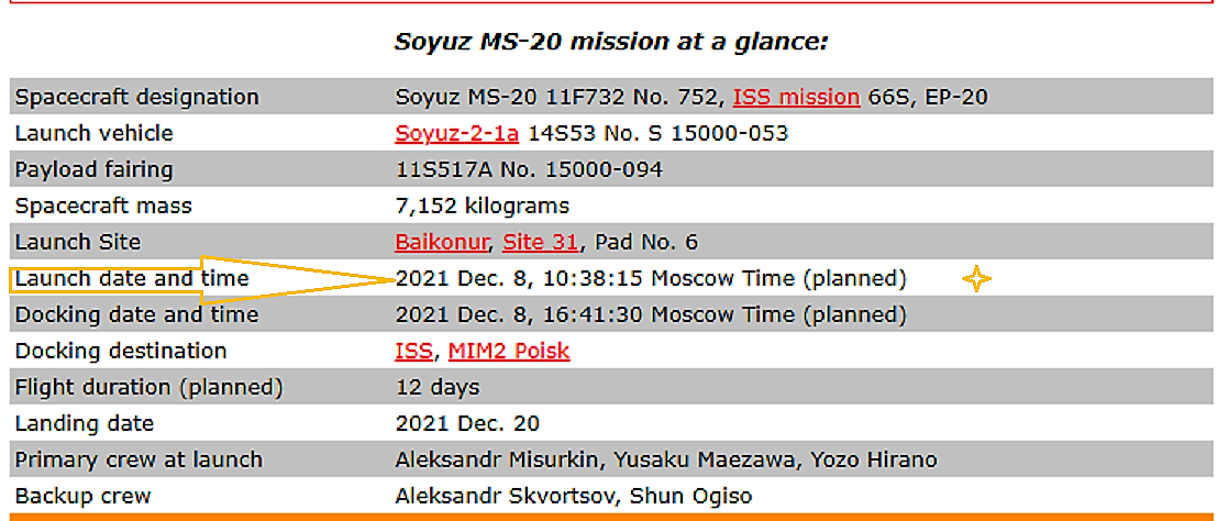 Sojus MS-20 für morgen, den 20. Dezember 2021 geplant.