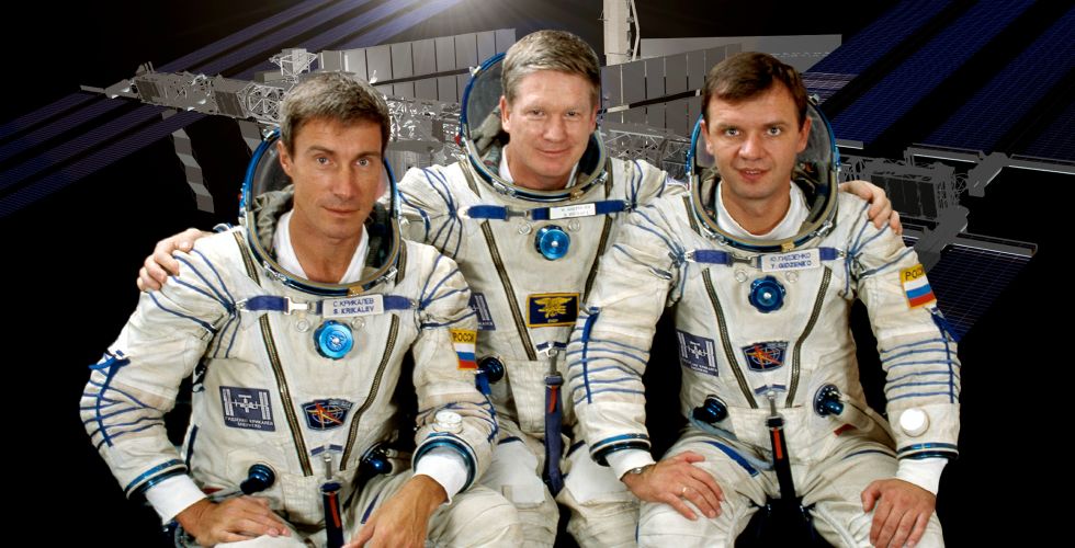 Das bemannte Raumschiff Sojus TM-31 brachte die erste ISS-Besatzung mit den Kosmonauten Juri Gidzenko, Sergei Krikalew und dem US-Astronauten William Shepard , gleichzeitig der Kommandant der ersten Expedition, in den Orbit.