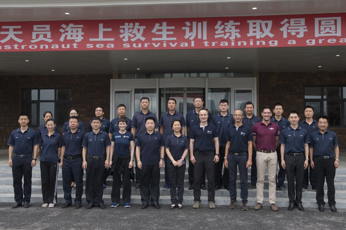 mit 16 chinesischen Taikonauten in Chinas Millionenmetropole Yantai für neun Tage an einem Überlebenstraining auf See teilnahmen, das vom chinesischen Astronautenzentrum organisiert wurde