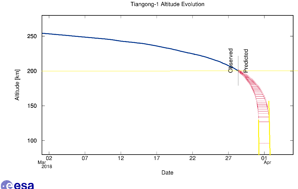 Das seit 2017 ungesteuert fliegende chinesische Raumlabor Tiangong 1 hatte doch eine etwas geringere Sinkrate, als ursprünglich angenommen.