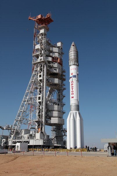 на космодроме Байконур состоялся вывоз на стартовый комплекс ракеты-носителя «Протон-М» с разгонным блоком «Бриз-М» и аппаратами российско-европейской миссии ExoMars-2016 - демонстрационным спускаемым модулем Schiaparelli («Скиапарелли») и орбитальным модулем Trace Gas Orbiter.