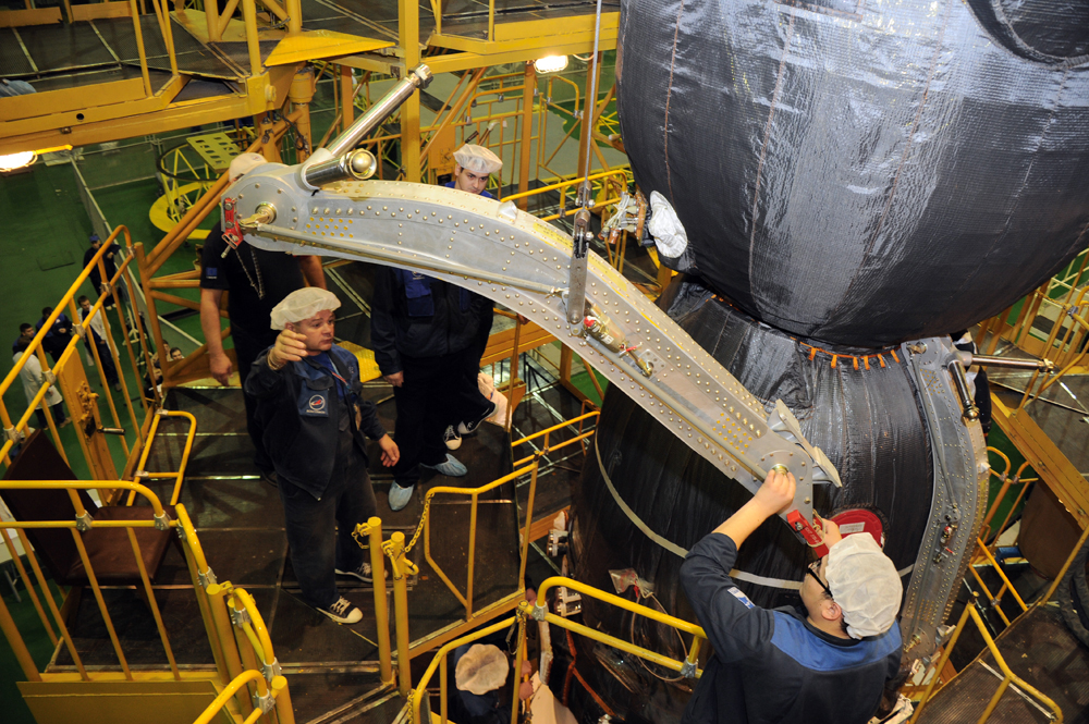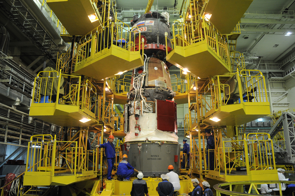 am 07.11. wurde in Baikonur im MIK 254 von Energia die Sojus MS-03 auf die Übergangssektion zur 3. Stufe ihres Trägers Sojus-FG gesetzt, danach in den Kontrollstand gehoben