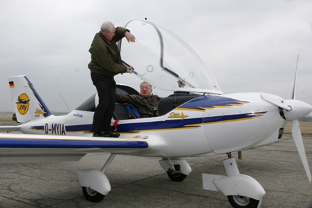 Generalmajor a.D. Jähn und Oberstltn. a.D. Bock, Geschäftsführer der Flugplatz Kamenz GmbH, am 22.2.2008 nach der Landung auf dem Verkehrslandeplatz