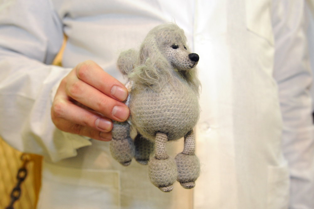 Als "G-Meter" wird dieser Pudel in der Kapsel dienenQuelle Bildstrecke Energija https://www.energia.ru/ru/iss/iss54/photo_12-13.html