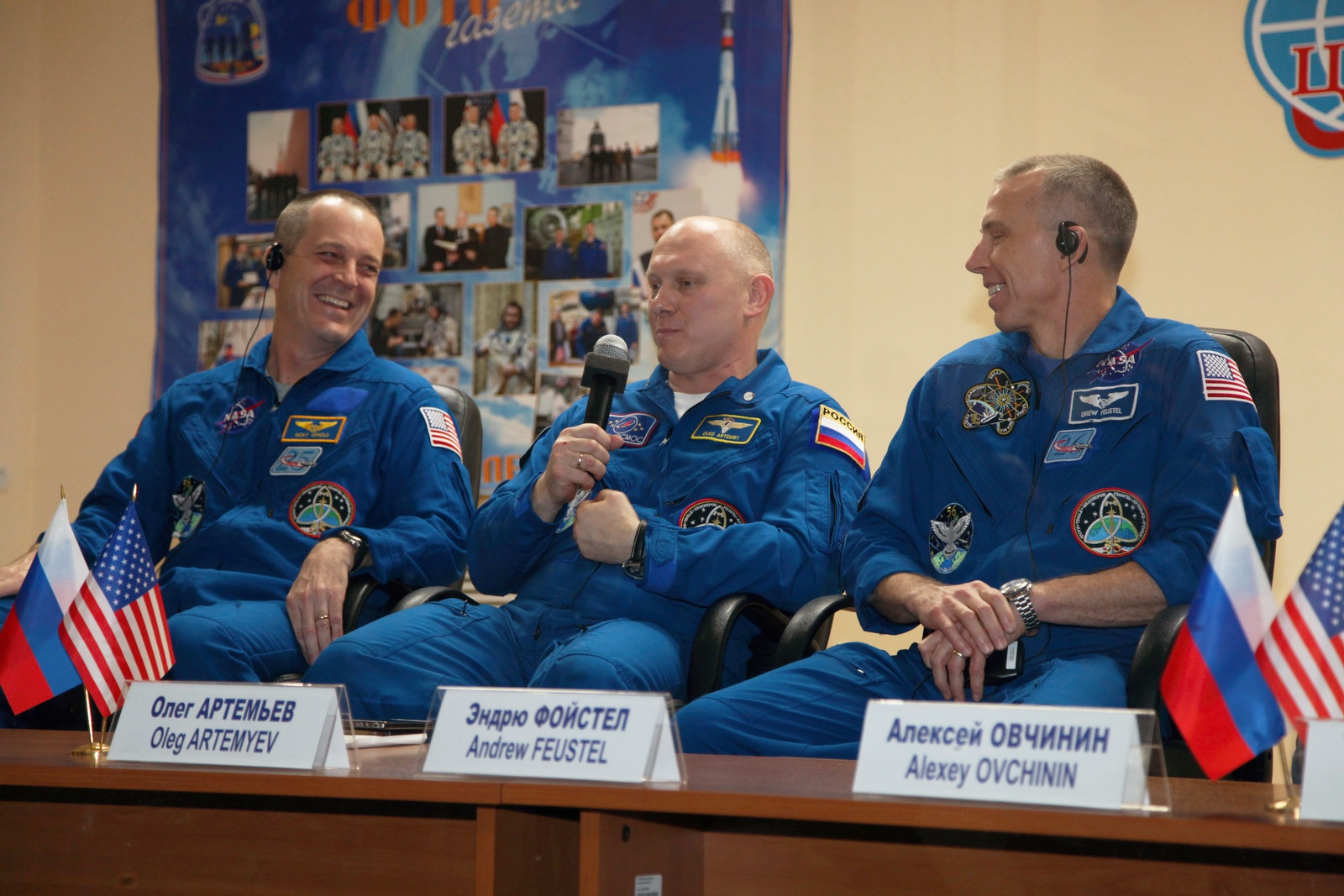 Der Kosmonaut Oleg Artemjew wird ihn morgen zur ISS mitnehmen und Anton Shkaplerov bringt ihn im Mai auf die Erde / ins Stadion zurück.