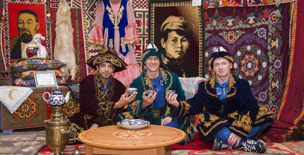 Als besonderen Höhepunkt gibt es die Teestunde in kasachischen Trachten in der Jurte Q.: und weitere Bilder https://www.roscosmos.ru/26792/