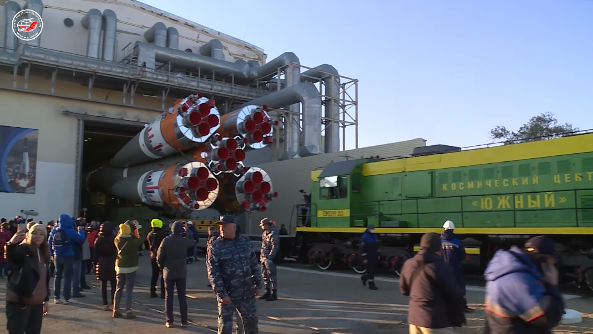 Heute, 01.10. 07:30 Uhr Ortszeit, 04:30 Uhr MESZ, Herausfahren der Sojus 2.1b auf den Startplatz 31 - in einem Kurzvideo auf YT zu sehen