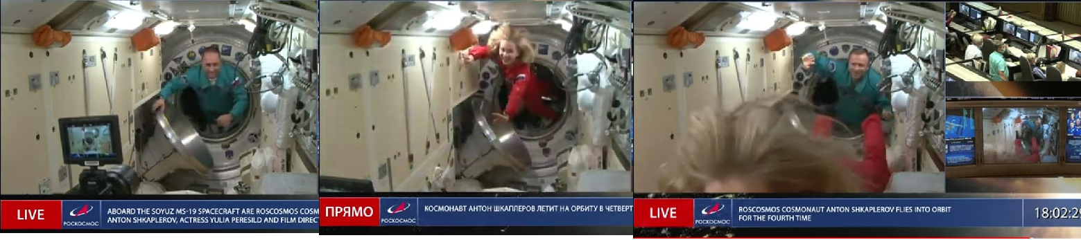Die Teilnehmer des Projekts Challenge, das sind Klim Shipenko und Julia Peresild sowie die Astronauten von Roscosmos Anton Shkaplerov, Oleg Novizsky und Petr Dubrov arbeiten am Filmprojekt im Orbit, sowie einschließlich der Besetzung der geplanten Aktivitäten und Experimente.