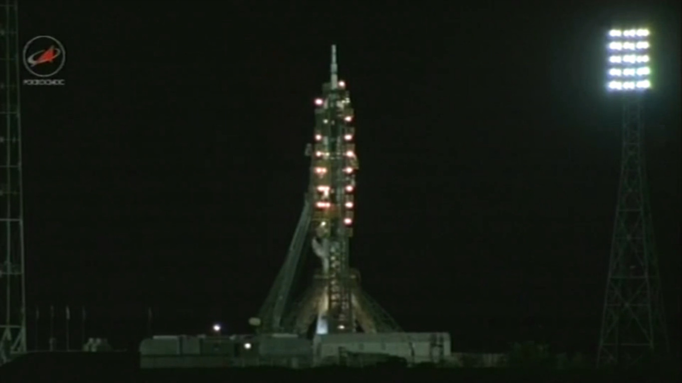Das Rollout der Sojus FG TMA-17M und Aufrichten auf der Start"Tulpe".