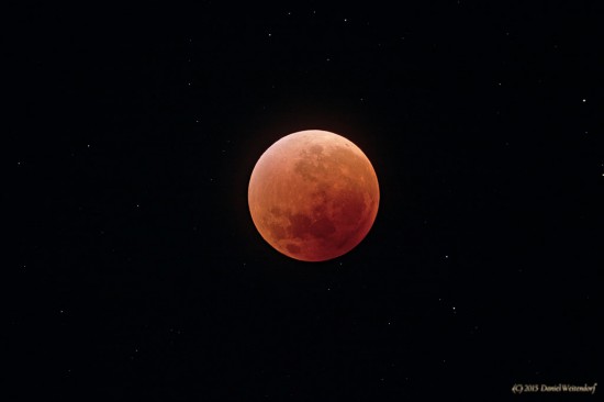 Sehr gut gelungen fand ich zwei Blutmondbilder, die ich Euch mit freundlicher Genehmigung vom Daniel gern zeigen möchte: "Eintritt" in den Kernschatten (hier sieht man schon das Problem Licht/Überlicht)