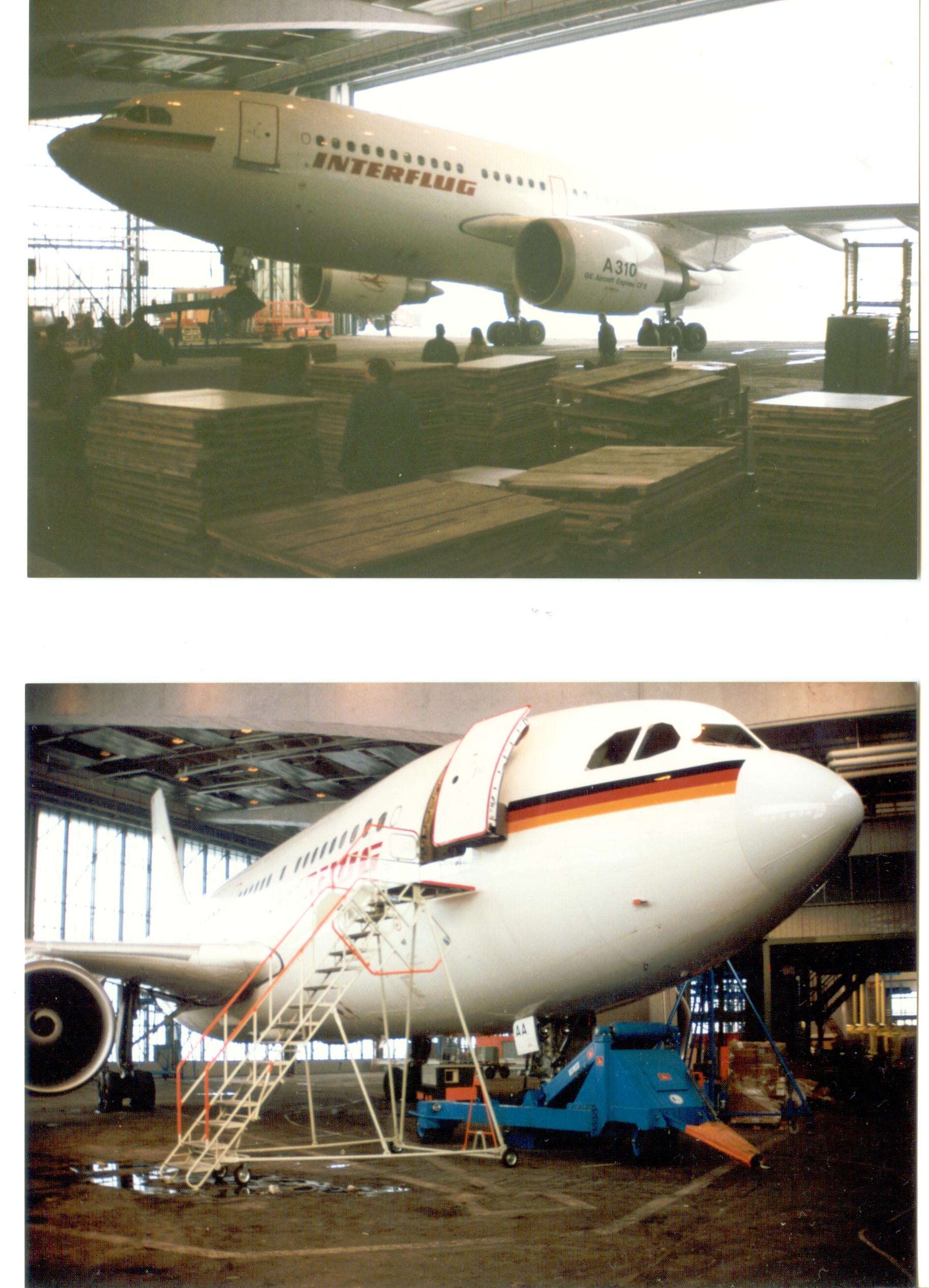 Auf allen vier Aufnahmen ist INTERLUG-Airbus 310-304 D-AOAA (ex. DDR-ABA) zu sehen.