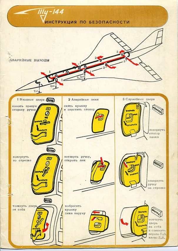 Hier mal Sicherheitsanweisungen für die Passagiere der Tu-144: