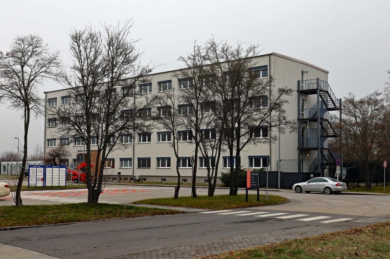 Das Gebäude rechts oben könnte das Verwaltungsgebäude des INTERFLUG-Betriebes Agrargflug gewesen sein. Darin war eine Etage mit besonderer Zugangssicherung versehen und vom Ministerium für Staatssicherheit belegt.