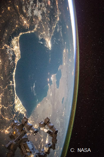 Ein ISS-Fan, Franz-ISS83, hat auf f ein NASA-Bild gepostet - " Das Kaspisches Meer, noch bei Nacht, von der ISS aus gesehen! "