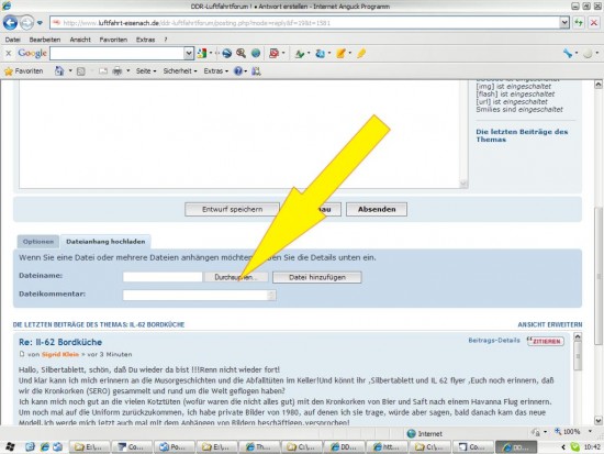 Der Dateiname steht nun im betreffenden Feld. Im Feld Dateikommentar kann man noch eine Bildunterschrift hinzufügen. Klickt nun auf die Schaltfläche " Daei hinzufügen". Das Bild wird nun direkt auf dem Server des Forums geladen.