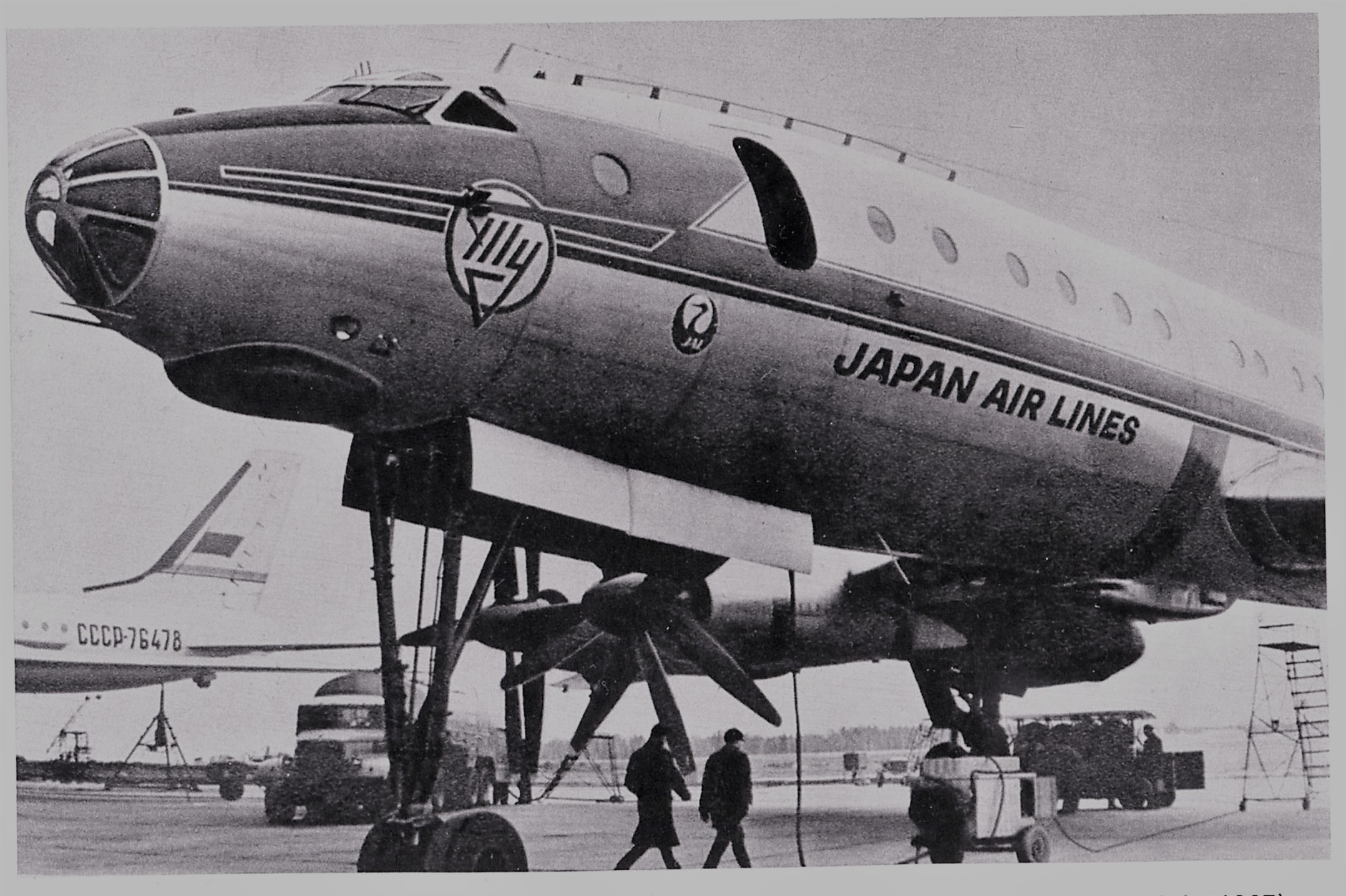 Auf gleichem Platz steht die TUPOLEW - 114 Rossija, die "langbeinige Schöne", als leistungsstärkster und schnellster gigantischster Turboprop- Liner der Welt.