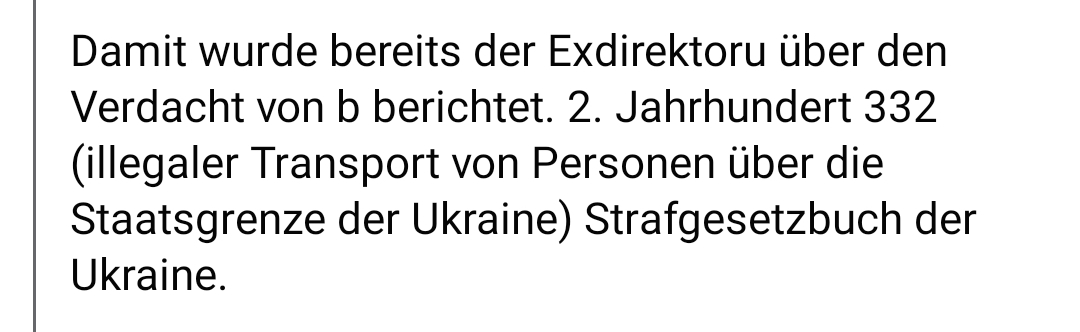 Aufgrund dieser Tatsache wurde der Ex-Direktor bereits wegen Verdachts nach Teil 2 von Art. 332 (illegaler Transport von Personen über die Staatsgrenze der Ukraine) des Strafgesetzbuches der Ukraine.