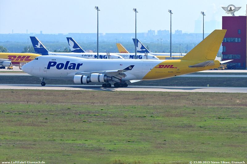 Polar Air Cargo fliegt auch regelmässig nach Leipzig. Im Bild die N454PA, eine Boeing 747-400F.