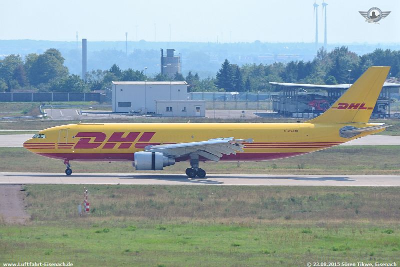 DHL, wie unsere Deutsche Post heute in der öffentlichen Wahrnehmung heisst, ist natürlich der Platzhirsch. In Leipzig bedeutet das, das zwar fast immer DHL drauf steht, aber meistens European Air Transport (EAT) drinne ist. EAT ist eine Frachtfluggesellschaft mit Basis in Leipzig-Schkeuditiz. Bis vor einigen Jahren war der Heimatflugplatz dieser nun deutschen und früher belgischen Fluggesellschaft in Brüssel.