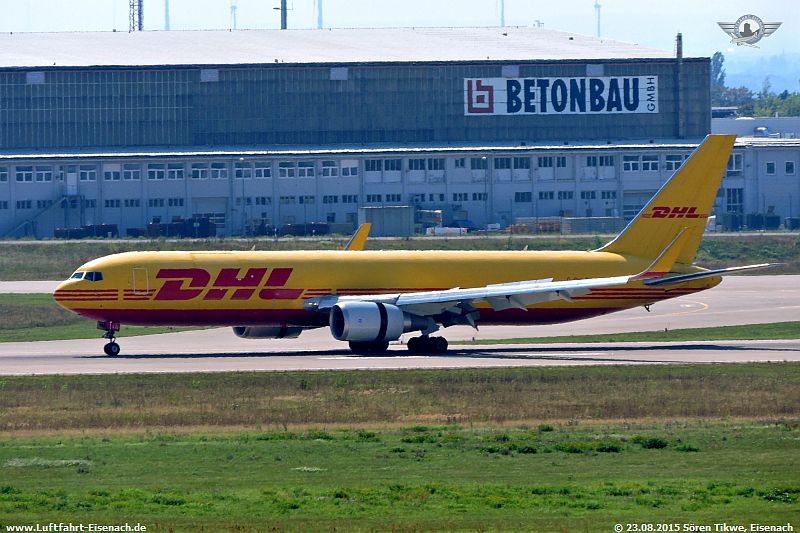 G-DHLG ist eine Boeing 767-300ERF und gehört der britischen DHL-Airlines. Diese Maschine ist kein Umbau aus einer gebrauchten Passagiermaschine, sondern wurde bereits als Frachter gebaut und 2009 ausgeliefert.