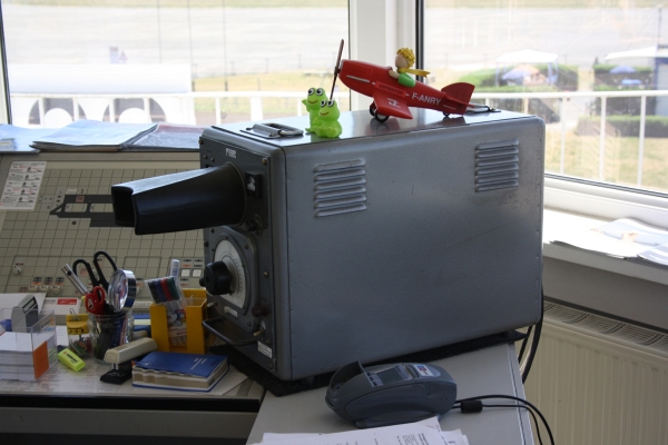 Auf dem Turm fiel mir dann sofort ein antikes Gerät auf. Laut Aussage des Flugleiters gehört das Ding zu einer Vorrichtung, um die Wolkenhöhe zu messen. Funtionstüchtig - wohlgemerkt.