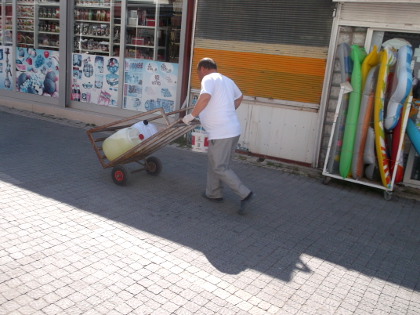 Im Bus selber gibt man dann lautstark sein Fahrziel auf der Route an und gibt das Fahrtgeld (irgendwo zwischen 3-5 Lira) direkt dem Fahrer oder sollte der Bus allzuvoll sein, läßt man es einfach vertrauensvoll durch die anderen Mitfahrer nach vorne geben und das Wechselgeld kommt auch (man staune) auf dem selben Weg zurück. Das Austeigen aus dem Dolmus geht übrigens auch so unkompliziert wie das einsteigen. Mit einem lautstarken "Stop" kündigt man seinen Wunsch an welcher in der Regel auch umgehend erfüllt wird.