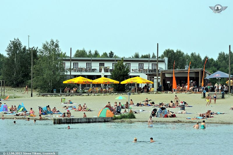 Zunächst einmal kamen wir in Miltiz an und stiegen aus. Dann stieg mir ein geruch in die Nase. Also, das war wie Erbrochenes und Furz gemischt. Ich hatte Mühe, die im Bauch mitgeführten Lebensmittel in Besitz zu halten. Grund war eine Aromafabrik in diesem Ort. Die Einwohner haben sich wohl daran gwöhnt. Jedenfalls erreichten wir unser Ziel schnell und freuten uns bei der doch extremen Hitze auf das kühlende Nass.