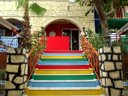 Da ich die Planung vollkommen meinen beiden Freunden überlassen habe und ich auch nicht wirklich die Muse hatte mir vorher das Hotel im Internet mal anzuschauen - waren meine Befürchtungen groß das die beiden bei der Buchung so eine anonyme Betonburg auf dem Tacho hatten. Aber was musste ich sehen .... nichts war perfekt,keine geraden Linien,keine Neonreklame,keinen grauen oder weissen Beton - stattdessen Farbe - rot,gelb.grün,blau ... kleine,verschachtelte Appartments ... alles wirkte auf mich ein wenig wie die typischen Unterkünfte des südamerikanischen Mittelstandes - einfach perfekt für meinen Geschmack.