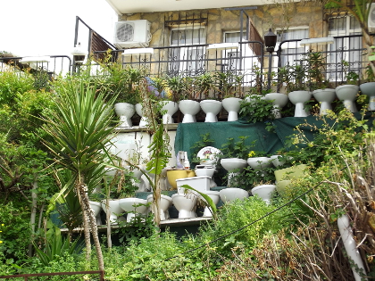 Etwas später traf ich dann meine Jungs im Hotel wieder und erkundeten zusammen nach dem Kaffee trinken die andere Richtung von Side oberhalb der Promenade. Viele Neubauten dominierten hier das Straßenbild, und in einer Bank unseres Vertrauens (gar nicht so einfach bei der Masse der anwesenden Finanzhäuser) wollten wir ein paar Euros in die Landeswährung Lira tauschen. Man kann zwar selbstverständlich auch überall in Euro bezahlen aber Ahmed gab mir am Morgen den Tip das Geld zu tauschen, den viele Sachen werden gerne teurer verkauft wen die Verkäufer Euro´s sehen. So kostet eine Schachtel einheimische Zigaretten, sechs Lira (ca 2Euro), bezahlt man aber in Euro kostet die gleiche Schachtel direkt 2,50 Euro. Billiger wäre es natürlich aufzuhören ;-)