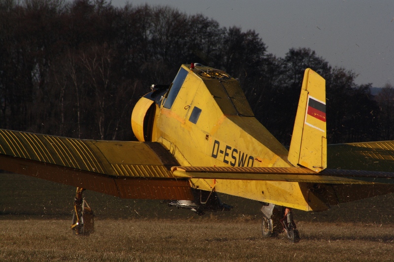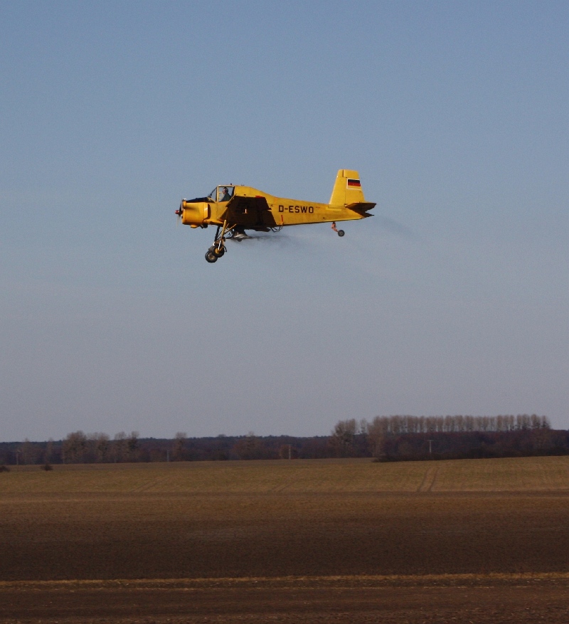 Die Hummel war gerade zum AFP zur Beladung geflogen, da kam diese BO in Arbeitsflughöhe über das Feld gedüst, auf dem wir uns postiert hatten. Zette hatte an alles gedacht, sogar an das Pausenprogramm