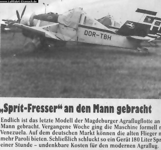 Zeitgenössischer Presseartikel zum Verkauf der PZL-106. Leider habe ich unsauber gearbeit und weiss auch die Zeitung nicht mehr...